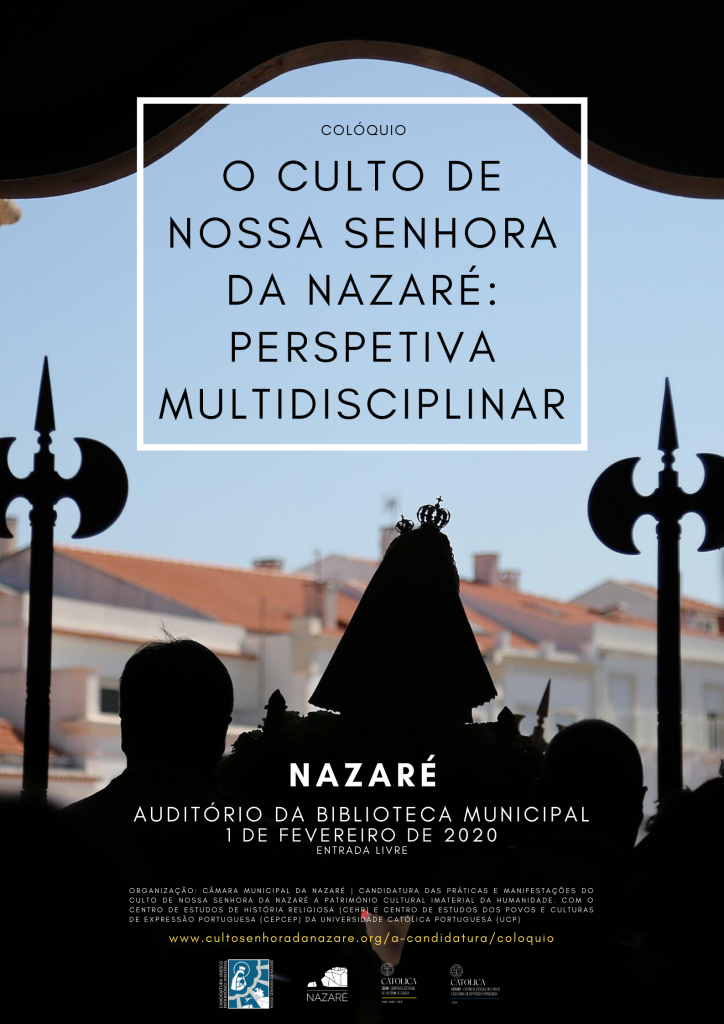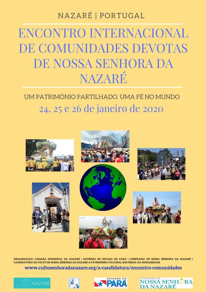 No âmbito da Candidatura das Práticas e Manifestações do Culto de Nossa Senhora da Nazaré a Património Cultural Imaterial da Humanidade, realizaram-se dois eventos públicos: um Encontro Internacional de Comunidades (24 a 26 janeiro 2020) e um Colóquio Científico (1 fevereiro 2020). Conheça o programa de cada um destes eventos nas respetivas subpáginas.